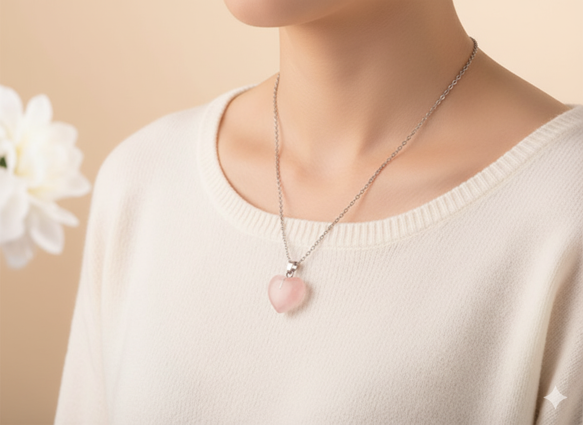 Her bir Pembe Kuvars Kalp Kolye, doğanın sevgi dolu enerjisini yansıtan eşsiz bir parça olup, kalbini açmak ve hayatına daha fazla sevgi çekmek isteyen herkes için uygun bir aksesuardır.